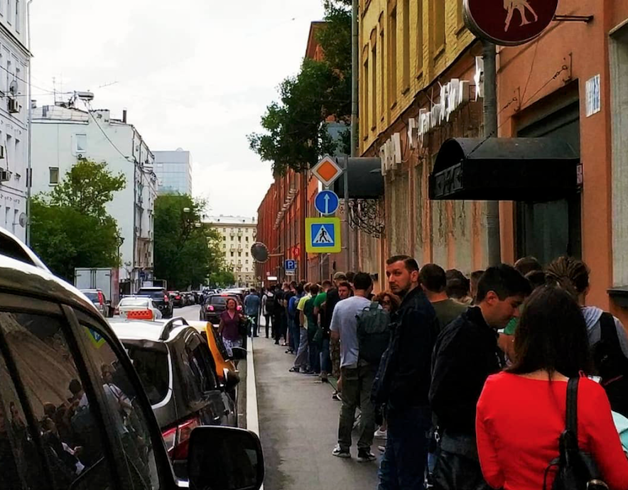 За первой понимающей по-русски умной колонкой от «Яндекса», продажи которой стартовали утром 10 июля только в одном магазине в Москве, выстроилась очередь в несколько сот человек. Корреспондент The Bell выстоял эту очередь, чтобы узнать, кто и почему пришел купить гаджет в первый день продаж.