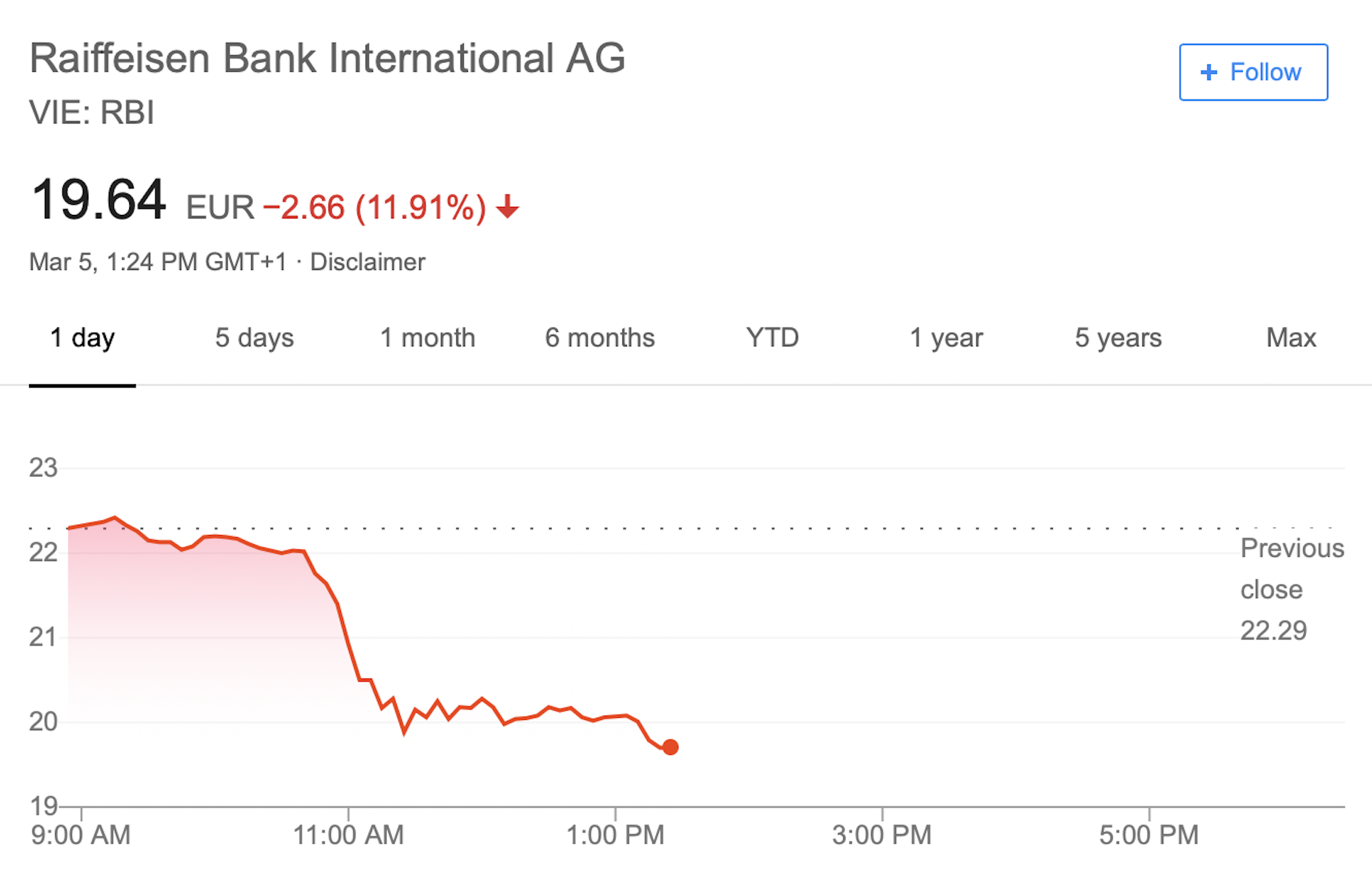 Акции Raiffeisen Bank упали на 12% из-за предполагаемой связи с офшорами «Тройки»