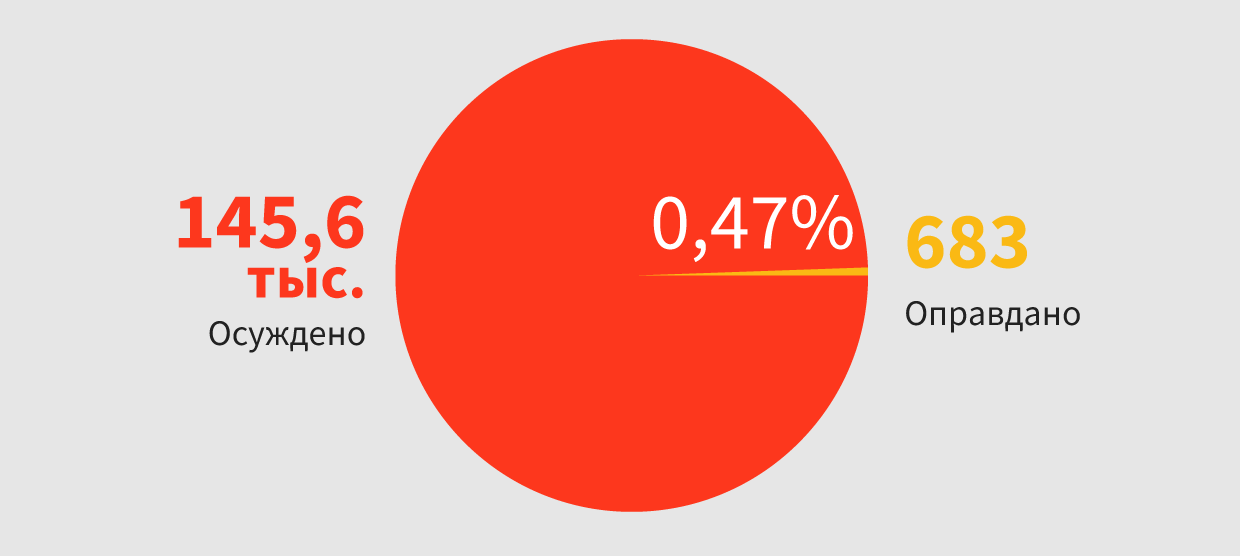 * Процент оправдательных приговоров по основной статье обвинения согласно статистике Судебного департамента Верховного суда России с 2015 по 2018 год