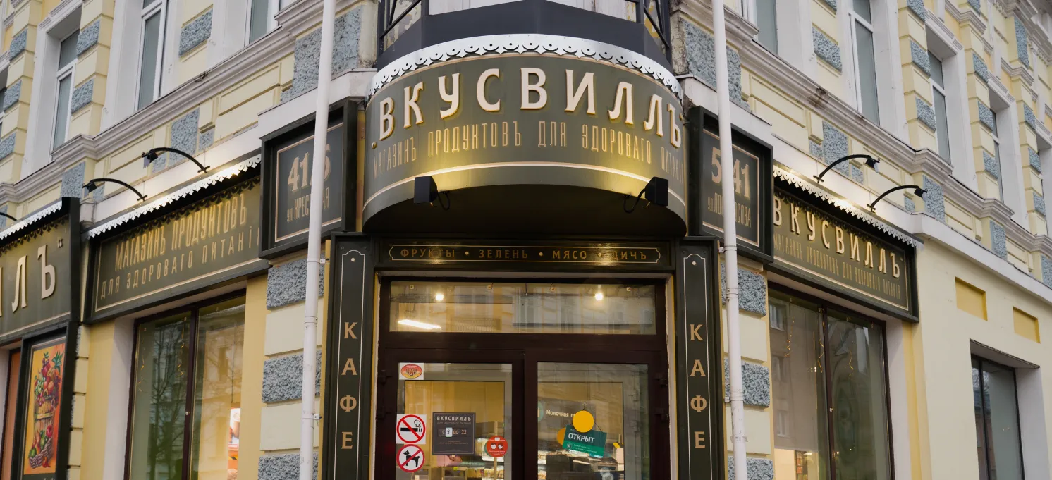 В феврале 2020 года под старинной вывеской появился «ВкусВилл», а в ноябре 2021-го сеть открыла в городе вторую точку в дореволюционном стиле. «У магазинов «ВкусВилл» ни в одном городе нет такой нестандартной вывески, обычно мы всегда придерживаемся нашего фирменного стиля. Но при этом умеем работать с любыми задачами, любим экспериментировать и с большой увлеченностью пустились в разработку нестандартного оформления», — говорит Дарья Сердюк, ведущий дизайнер по оформлению магазинов «ВкусВилл». Вывеску оцинковывали, название наносили художественной резкой по металлу и красили акрилом вручную.