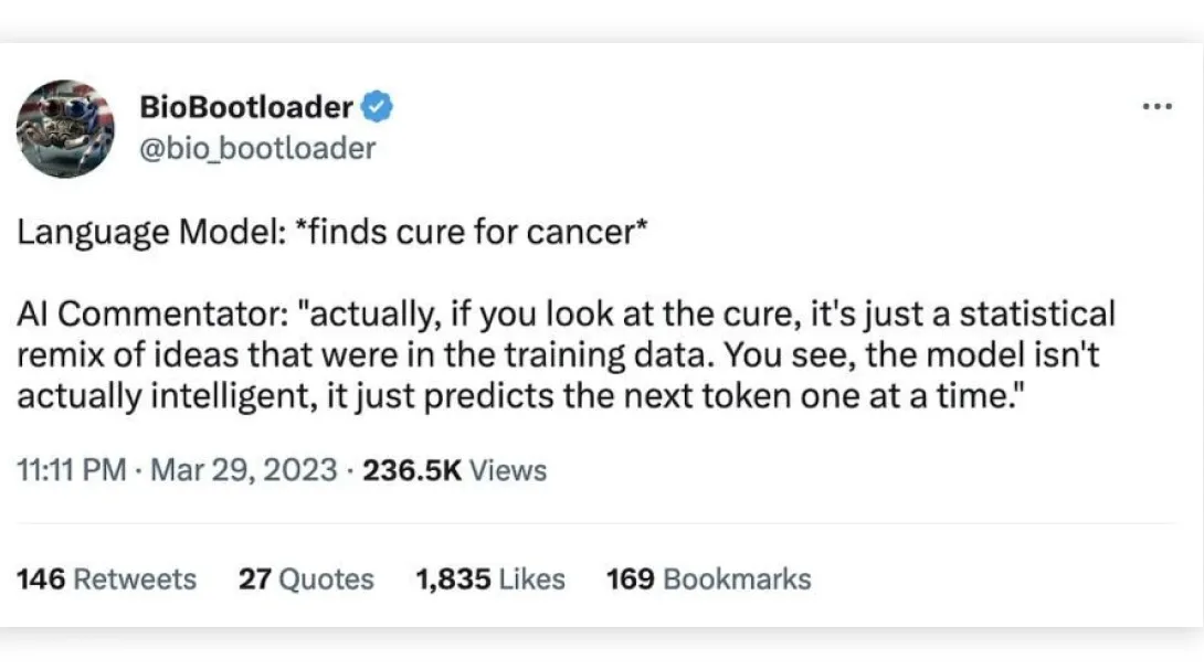 1. Закрыть наконец-то бесконечные срачи «является ли Х интеллектом или это просто программа» и перейти к более важным вещам. А то мы зациклились, как в той шутке из твиттера: