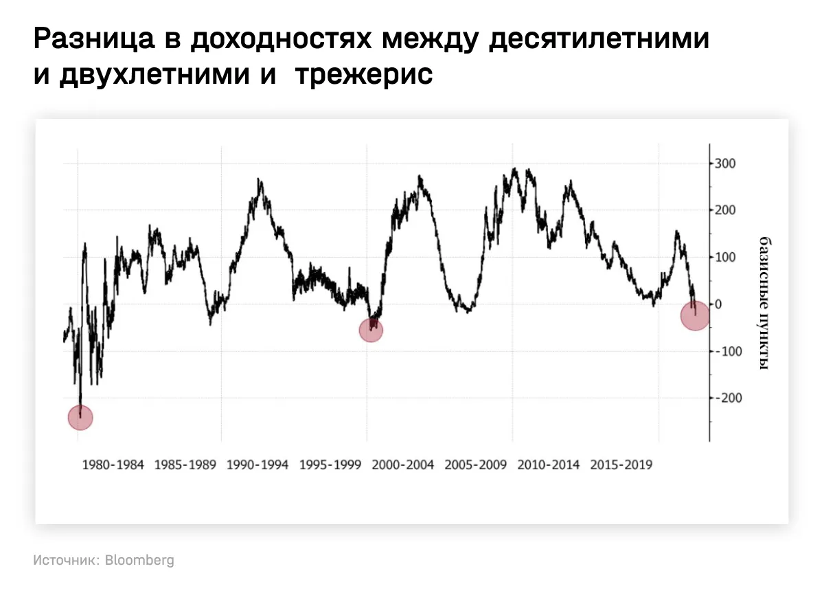 Акции почти не отреагировали на последние данные об инфляции в США, в отличие от облигаций (как это зачастую и бывает). Инверсия доходности между двухлетними и десятилетними трежерис достигла максимума с 2000 года, когда разница составляла 56 б. п., указывая на то, что рецессия практически неизбежна. Но пока ситуация еще далека от начала 1980-х, когда разница составляла 2,4 процентных пункта.