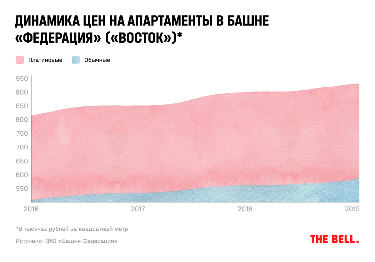 Цена квадратного метра в апартаментах «Федерации» достигает 900 тысяч рублей, стоимость апартаментов на верхних этажах превышает 2 млрд.