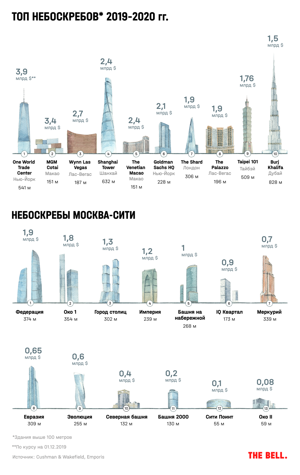 В 2019 году «Федерация» вошла в число самых дорогих высоток Москвы — ее оценили в 120 млрд рублей, а стоимость всех небоскребов «Москва-Сити» — в 701 млрд.