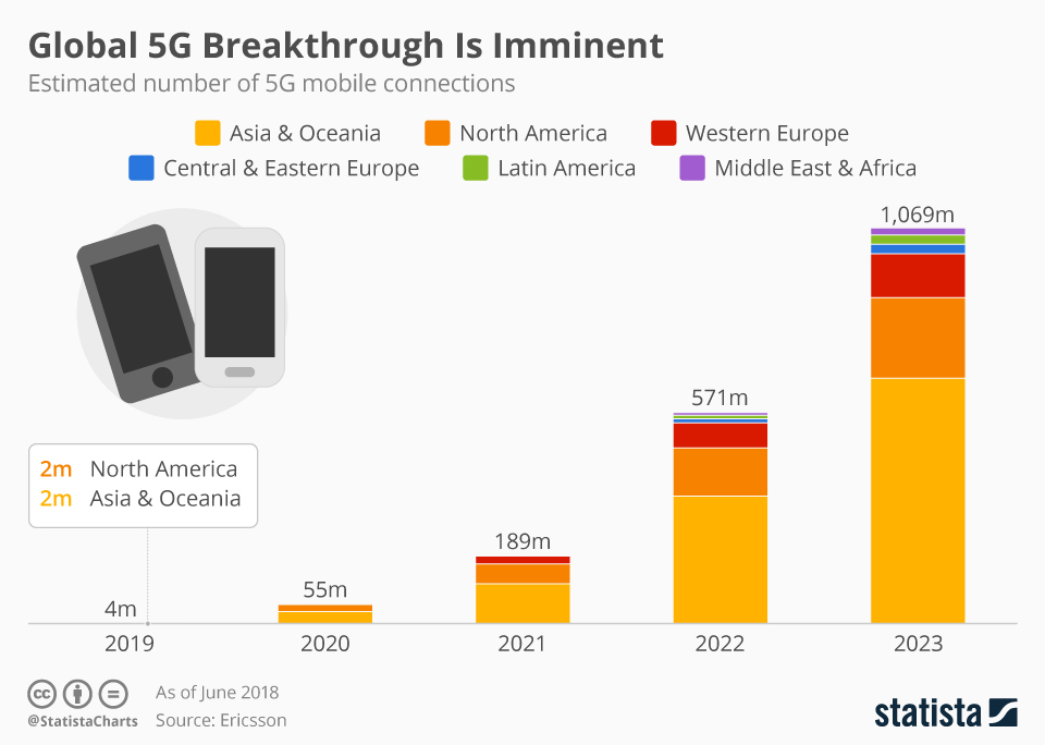 - Скорость интернет-соединения в сетях 5G будет как минимум в 20 раз быстрее, чем в самом современном сейчас 4G (LTE). Переход мировых сотовых операторов и производителей смартфонов на 5G начнется в 2019 году. Сейчас лидеры по развитию сетей нового поколения — Япония и Китай.
