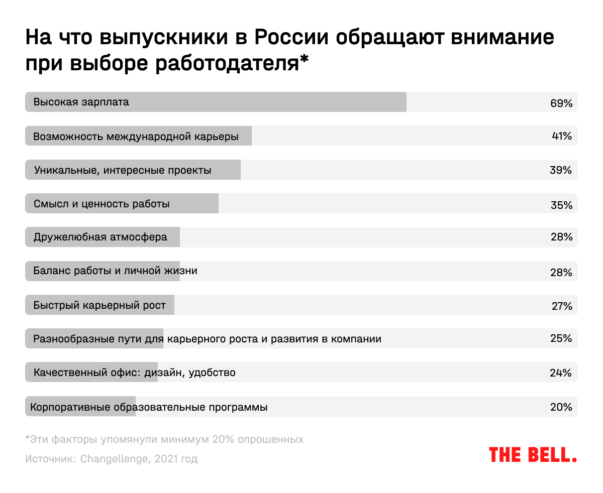 Главный фактор при выборе работодателя — размер зарплаты. На втором месте — возможность международной карьеры.