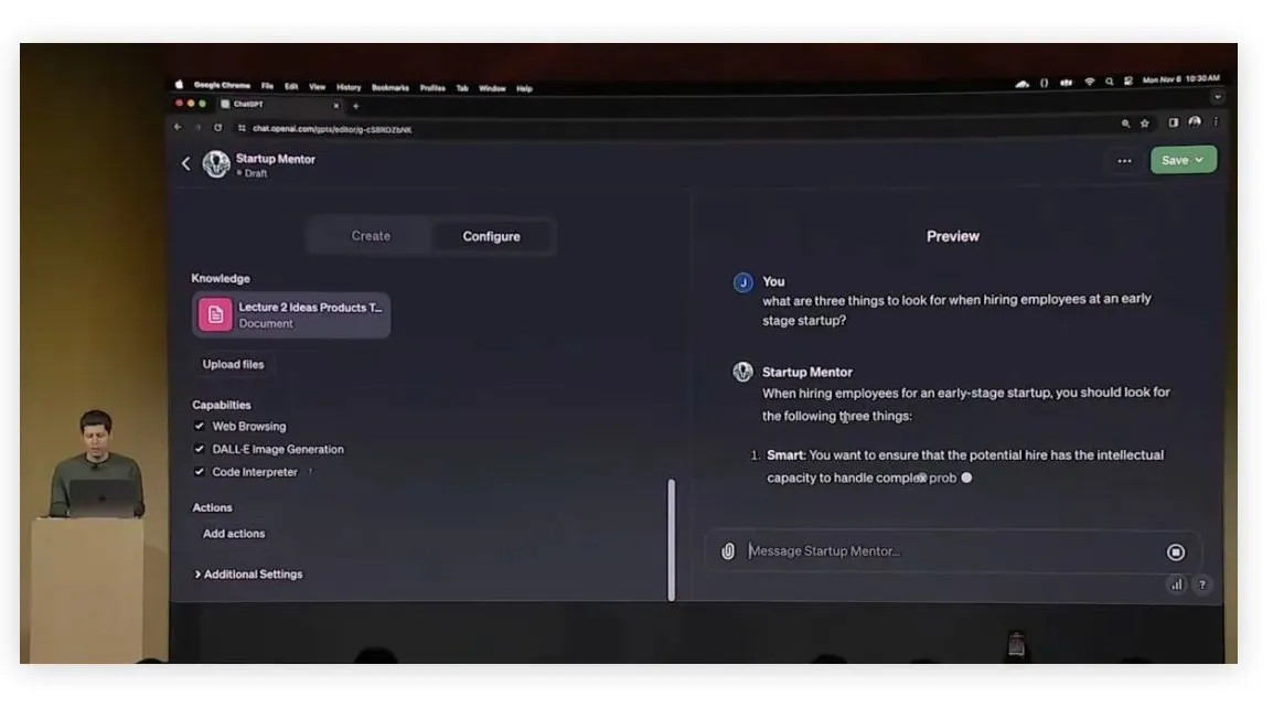 И сразу же после этого Сэм объявил, что в конце ноября запускается онлайн-магазин GPTs, где каждый после прохождения модерации сможет поделиться своим творением. Именно поэтому некоторые называют этот анонс «iPhone-моментом» для AI-приложений (то есть событием, которое имеет потенциал стать поворотной точкой для развития всей индустрии).