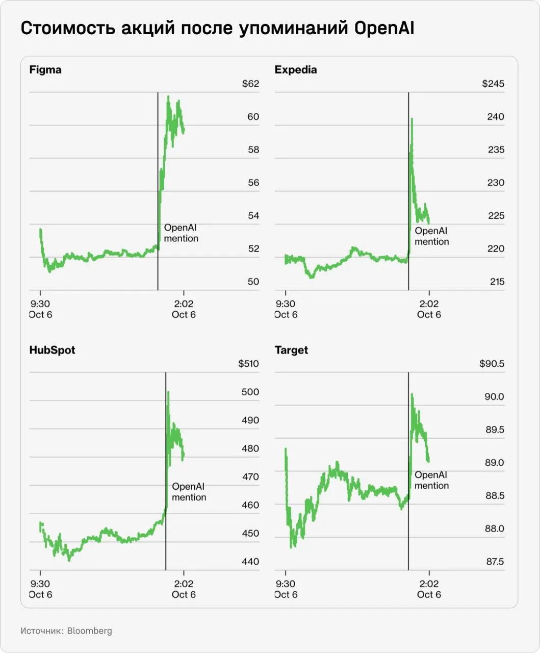 Упоминание OpenAI других публичных компаний на своей ежегодной конференции для разработчиков привело к резкому росту их акций.