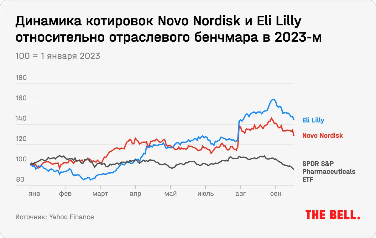 В конце марта мы написали о том, что лекарство от ожирения может стать «золотой жилой» для фармкомпаний, и рассмотрели две компании, чьи препараты от ожирения уже проходили клинические исследования: Novo Nordisk A/S и Eli Lilly and Company. Акции Novo Nordisk с тех пор выросли еще на 16,6% благодаря новым успешным результатам исследования, компания стала второй по стоимости в Европе после LVMH. Бумаги Eli Lilly, которые, по нашей оценке на конец марта, торговались на более справедливых уровнях, взлетели за полгода на 58,1% в ожидании одобрения препарата Mounjaro в США. Аналитики оптимистичны по поводу будущего обеих акций: хайп на рынках только усиливается, а рынок лекарств от ожирения называют, вероятно, крупнейшим для фармкомпаний в истории.