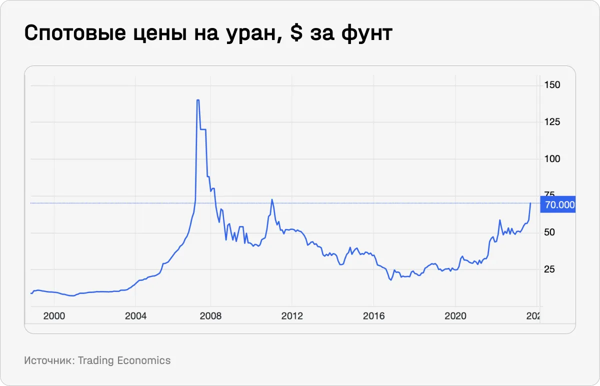 Цены на уран — на максимуме с Фукусимы
