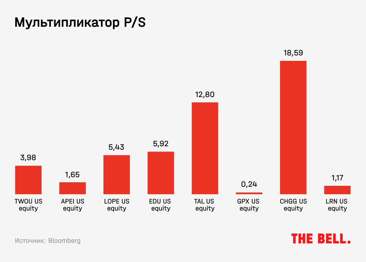 - Более высокие оценки — у больших и устоявшихся компаний на своих континентах, таких как Chegg и TAL Education. У обеих хорошие прогнозы по прибыли — TAL вернется к прибыли после убытка в 2019 году, а Chegg должен выйти в прибыль впервые в 2020 году.