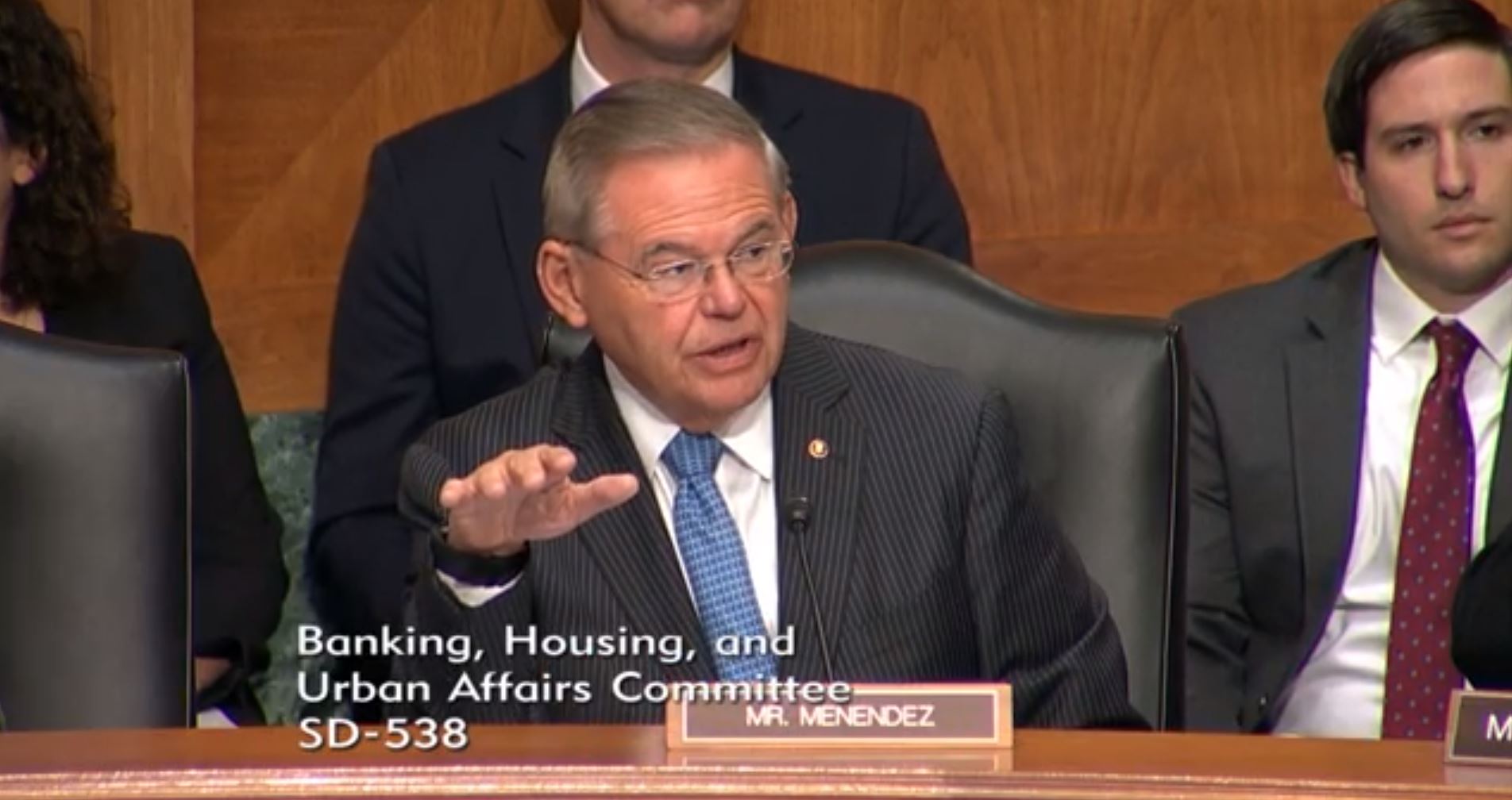 Один из авторов нового санкционного законопроекта, сенатор Боб Менендес допрашивает представителя минфина США. Фото: senate.gov
