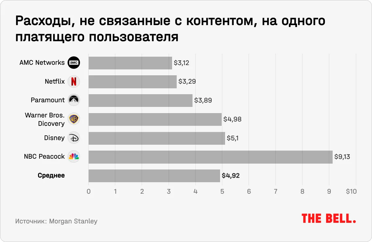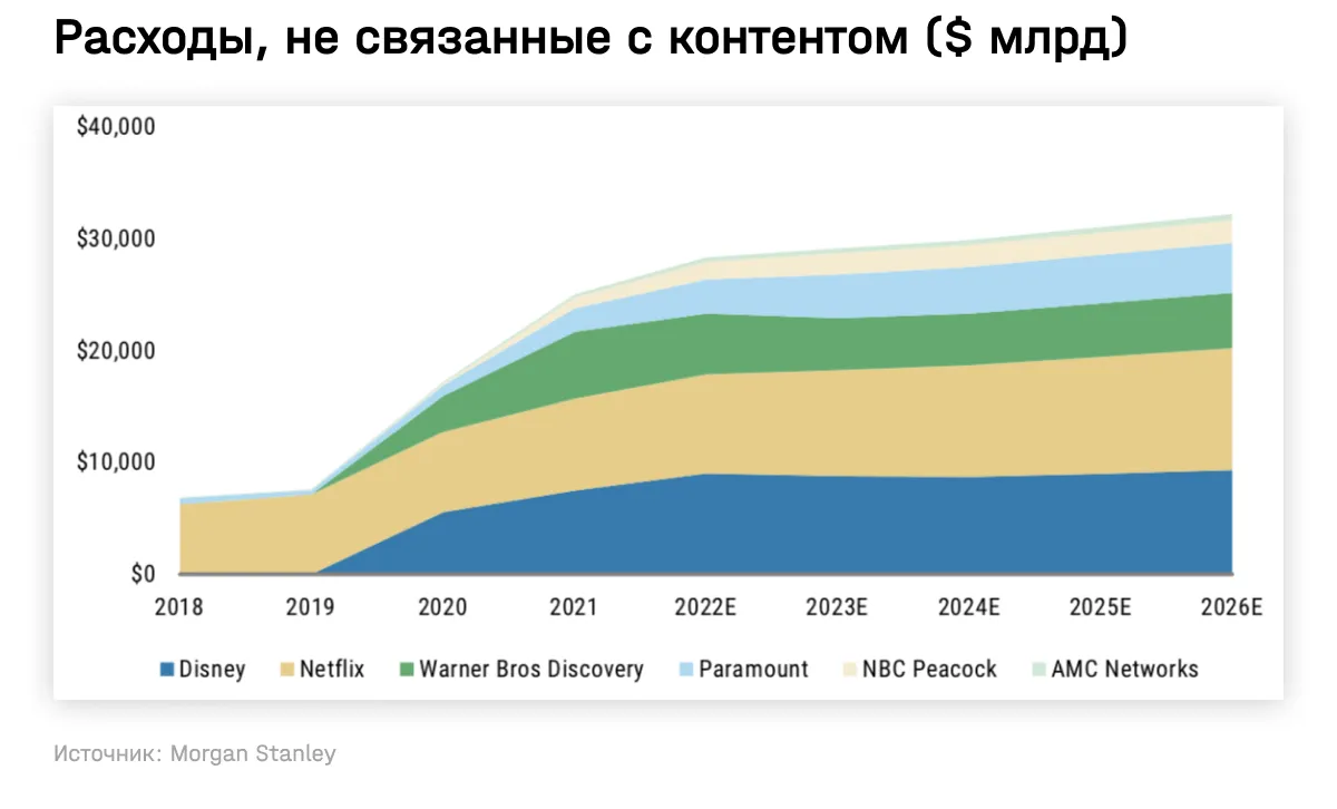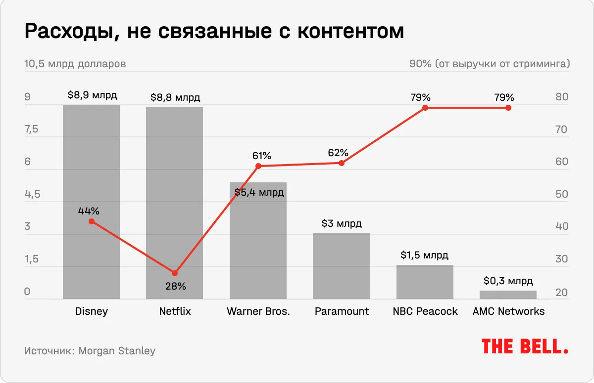 В то время как Netflix добился относительно более высокой эффективности в части расходов, не связанных с контентом, другие компании несут большие потери.