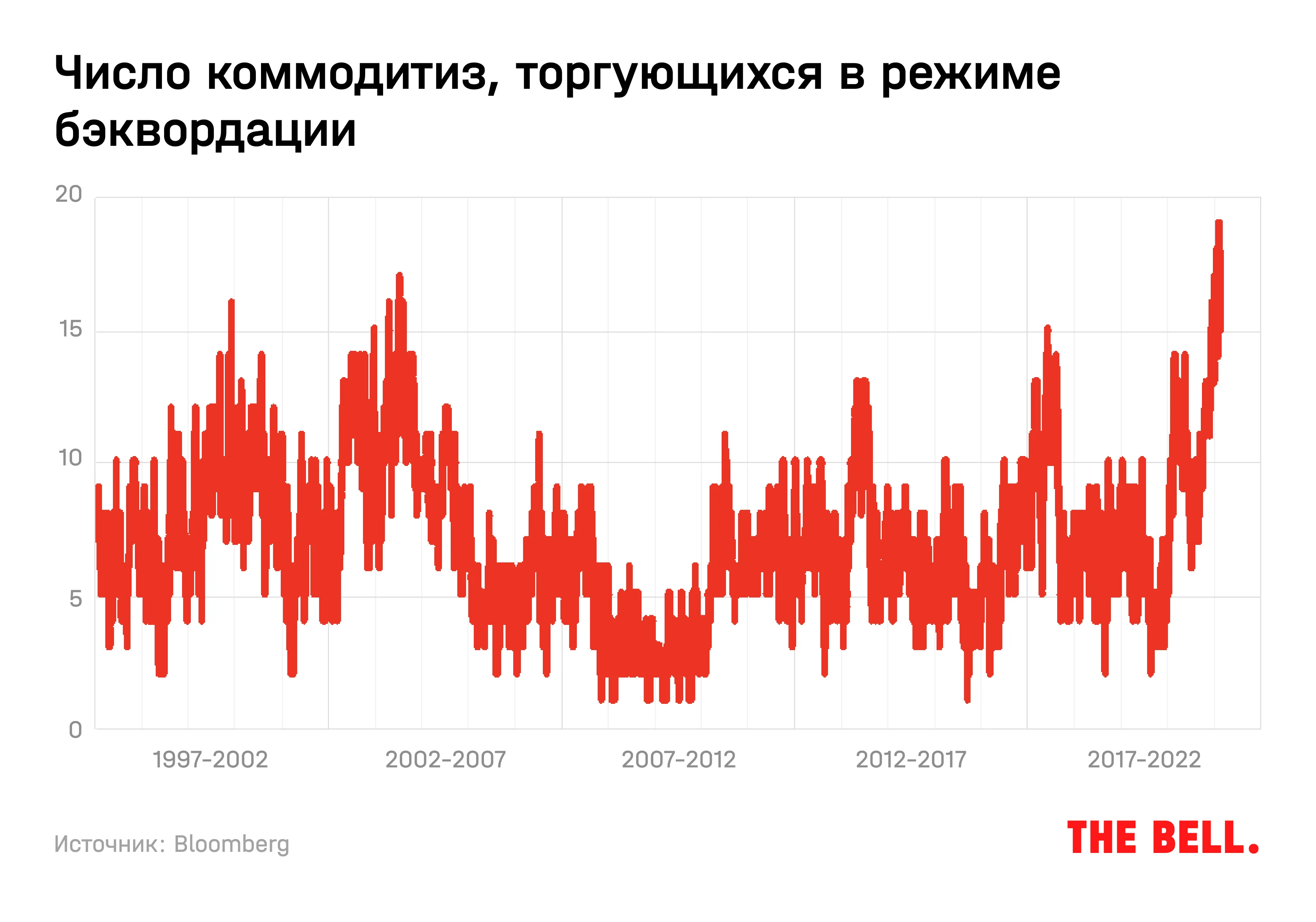 При этом 19 из 28 фьючерсов на биржевые товары — от зерна до нефти — сейчас торгуются в необычном режиме бэквордации (более ближние контракты стоят дороже, чем дальние), что говорит о высоком уровне дефицита товаров. Это максимальный показатель с 1997 года. «В мире почти не осталось товаров», — характеризуют ситуацию в Goldman Sachs. Цены на нефть — главный индикатор на товарных рынках — уверенно приближаются к $100 за баррель.
