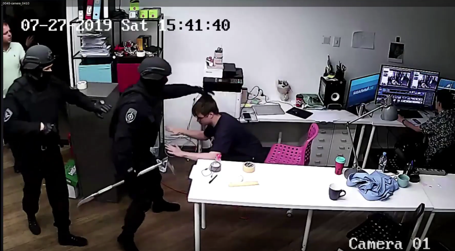 Полиция все-таки смогла сорвать трансляцию «Навальный LIVE» — полицейские пытались прорваться в офис с самого начала митинга. На записи с камер наблюдения слышно очень громкий стук, дальше в офис врываются сотрудники полиции в масках, вслед за ними идут люди в штатском, которые снимают все на телефон. Полицейские кричат «на пол» и требуют, чтобы Владимир Милов куда-то с ними прошел.