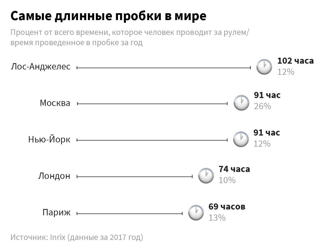 • Этот сомнительный рекорд еще не повод утверждать, что в Москве никуда невозможно доехать. Во-первых, в среднем протяженность пробок за последние 5 лет в столице снизилась на 3,8%. Во-вторых, как и большинство городов мира, сталкивающихся с заторами, Москва идет по пути постепенной замены личного транспорта общественным, преимуществом которого является скорость.