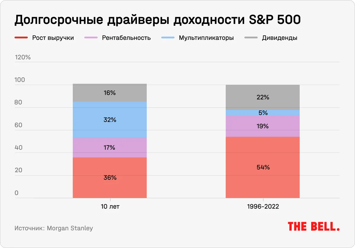 В целом, как отмечают в MS, нет причин для того, чтобы «бычий» тренд, начавшийся после 2008 года, окончился. В долгосрочной перспективе главным драйвером роста рынка является рост выручки, доказывают они.