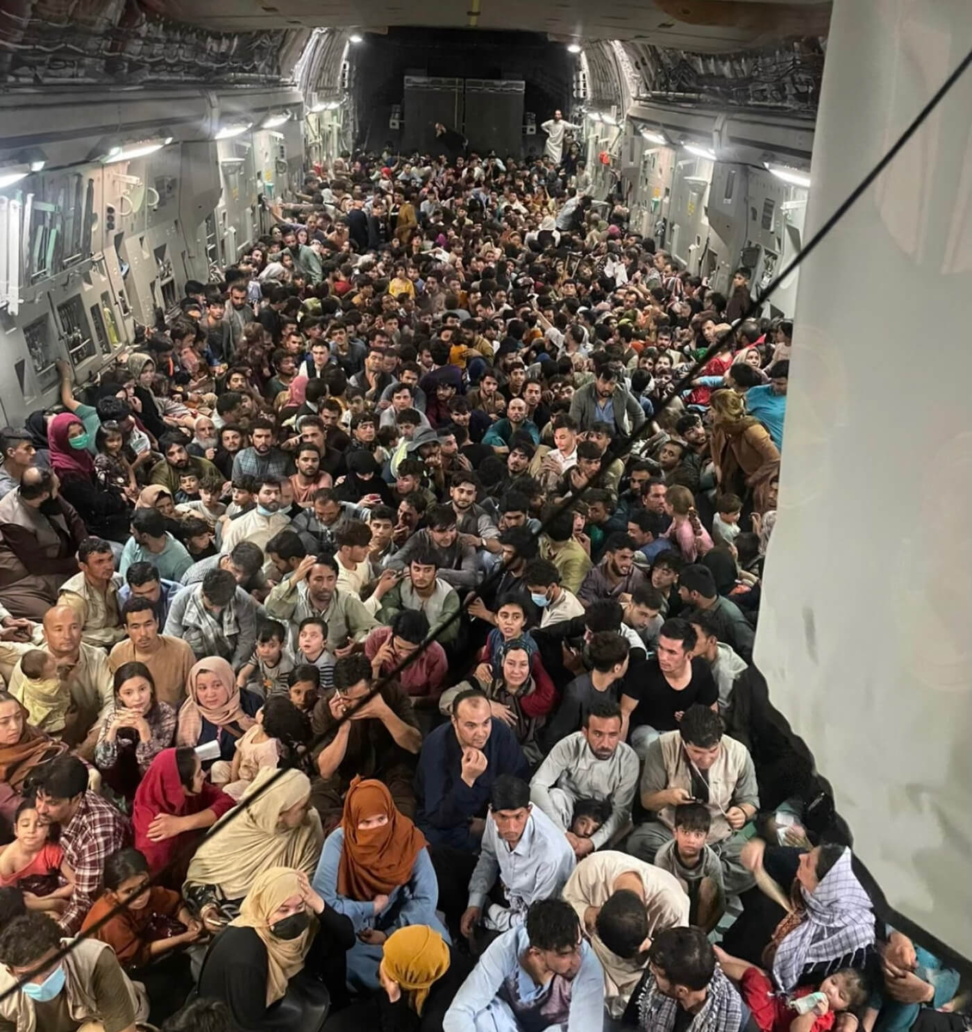 Поздно вечером 15 августа военно-транспортный самолет Boeing C-17 Globemaster III американских ВВС эвакуировал из Кабула около 640 мирных жителей Афганистана. Изначально экипаж самолета не собирался брать с собой столько пассажиров, но перед взлетом, во время паники в аэропорту, люди стали запрыгивать на полуоткрытую рампу самолета.