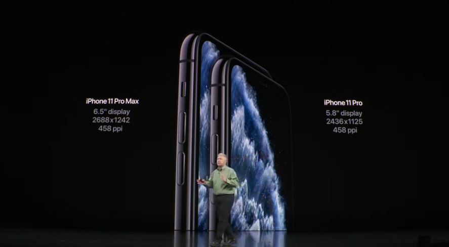 iPhone 11 Pro представляет Фил Шиллер, и особый акцент он делает на дизайне и OLED-дисплее новых айфонов. Один, Pro Max, — 6,5-дюйма, другой — просто Pro, 5,8 дюйма.