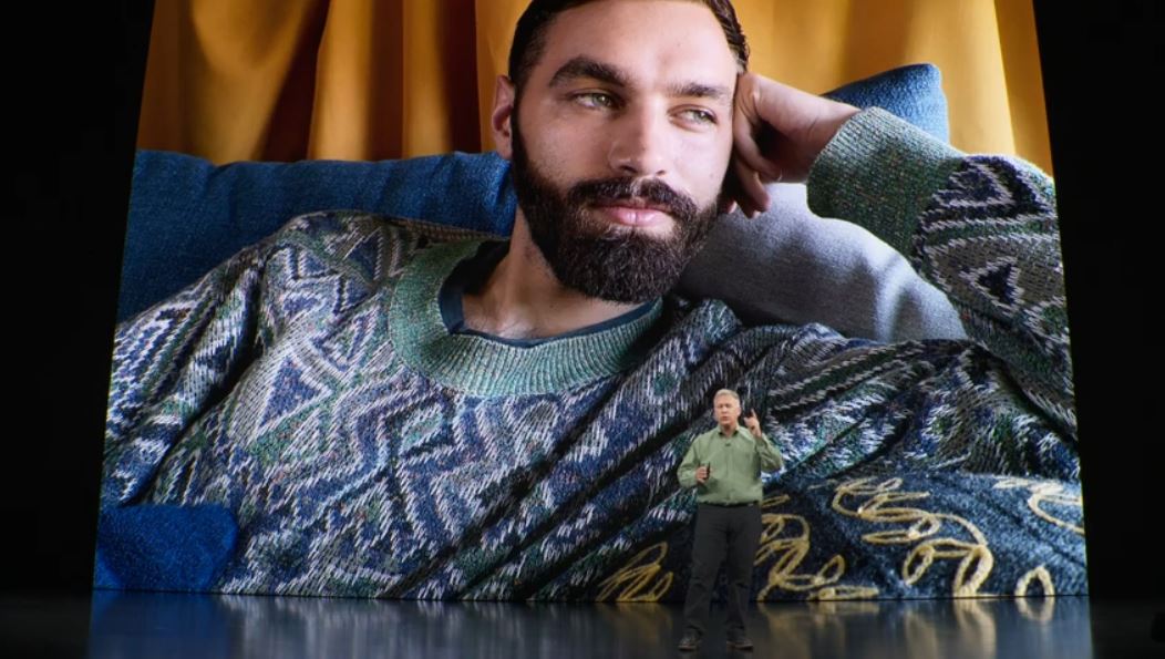 Тим Кук объявляет раздел презентации, посвященный платному стримингу TV+ — конкуренту Netflix. Он представляет первый официальный трейлер сериала See, действие которого разворачивается в далеком будущем, когда все люди потеряли возможность видеть.