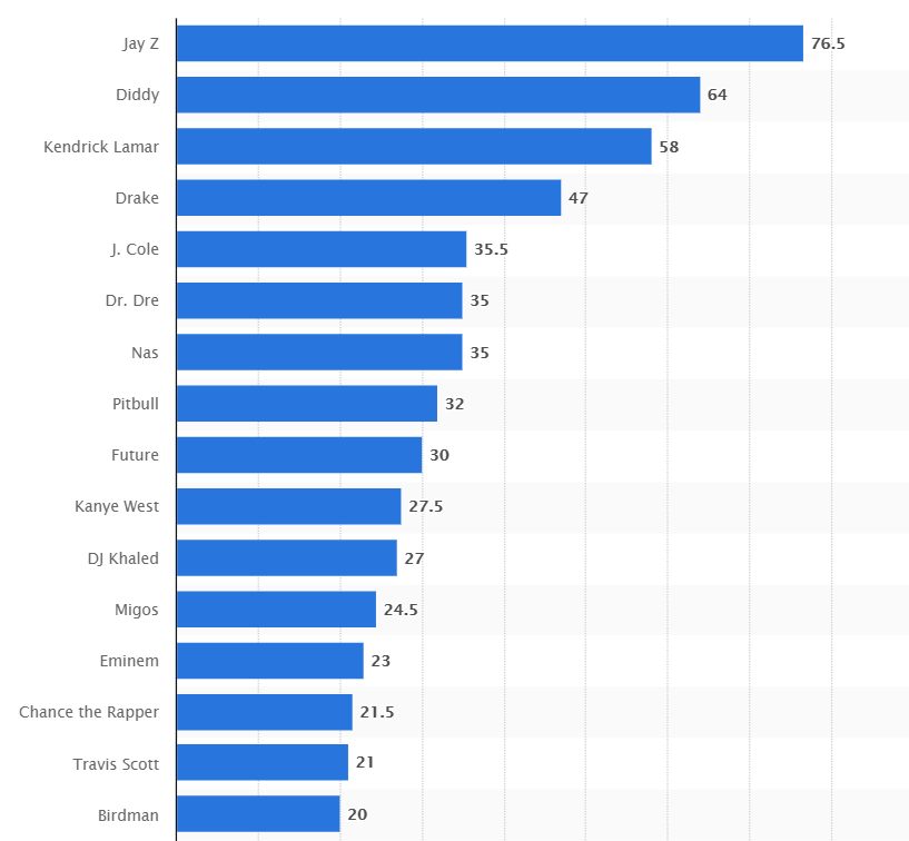 Jay Z (Шон Кори Картер) стал первым рэпером, заработавшим миллиардное состояние, сообщил Forbes. Среди активов 49-летнего музыканта — алкогольные бренды, компания звукозаписи, недвижимость, несколько десятков стартапов и коллекция картин. Forbes уже включал Jay Z в топ-10 высокооплачиваемых музыкантов в 2018 году. Тогда рэпер заработал $76,5 млн.