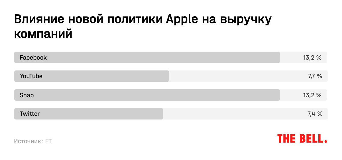 • В технологическом секторе влияние разрыва цепочек поставок ощутили Apple и Amazon, продающие физические товары, отмечает WSJ. У Аpple 81% выручки приходится на девайсы, которые в основном доставляются из Китая, у Amazon 75% выручки связано с продажей товаров, поэтому они также подвержены риску роста расходов на персонал. При этом их прогнозы на IV квартал оказались хуже ожиданий, а акции упали на 4% после выхода отчетов. Microsoft, Google и Facebook, у которых большая часть выручки приходится на цифровой бизнес, наоборот, показали хорошие результаты. Акции Alphabet и Microsoft достигли исторических максимумов после рекордной отчетности. С Facebook, объявившей о переименовании в Meta, ситуация сложнее: у компании почти вся выручка приходится на цифровую рекламу, поэтому она сильно пострадала из-за введения новых правил конфиденциальности Apple. По подсчетам FT, во втором полугодии компания из-за этого потеряет $8,3 млрд — 13,2% выручки. Такой же доли выручки лишится Snap, акции которого после выхода отчета упали на четверть и до сих пор не восстановились — еще одно напоминание о том, насколько уязвимы именно быстрорастущие компании.