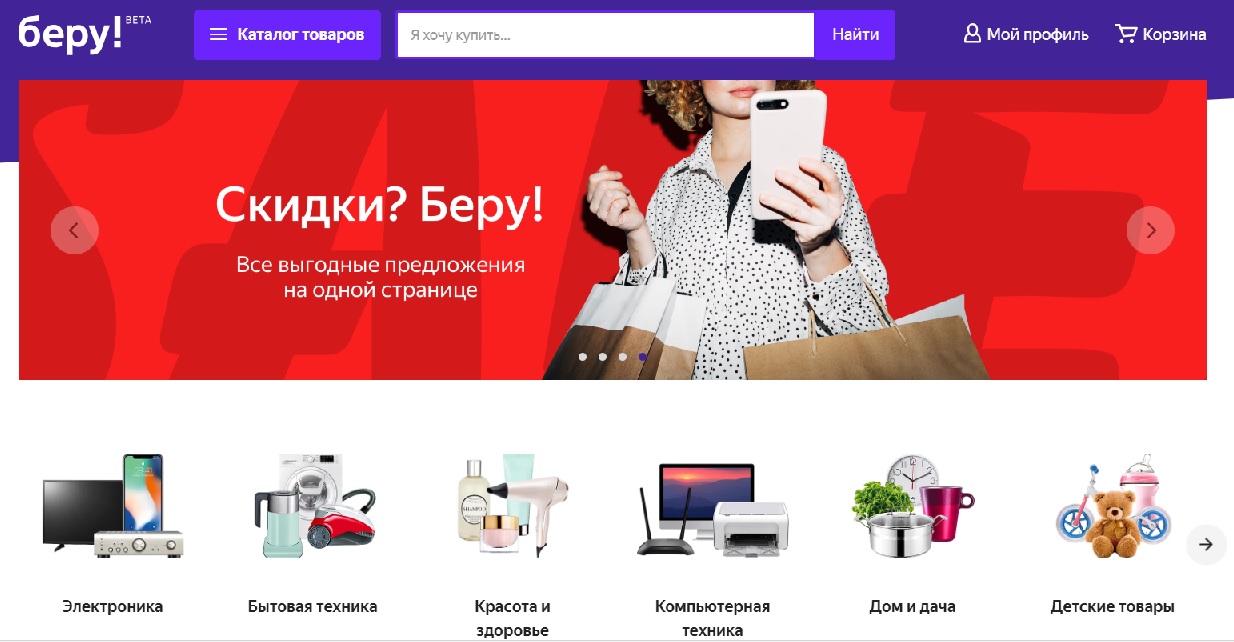 - Пока на «Беру» доступны несколько категорий: электроника, бытовая техника, товары для животных, для дома и дачи, детские товары - всего около 25 тысяч товарных позиций. Постепенно ассортимент будет расширяться — за ближайшие несколько лет он должен увеличиться до миллиона товарных позиций, говорится в пресс-релизе. При покупке от 3,5 тысяч рублей доставка на «Беру» бесплатна, меньше — стоит 249 рублей или самовывоз за 99 рублей.