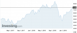 Что случилось. Нефть марки Brent подорожала в понедельник на 2,93%, до $74,08 за баррель. Это максимум с октября 2018 года. Нефть марки WTI также дорожает — за сегодня она уже выросла в цене на 2,54%, до $65,67 за баррель.