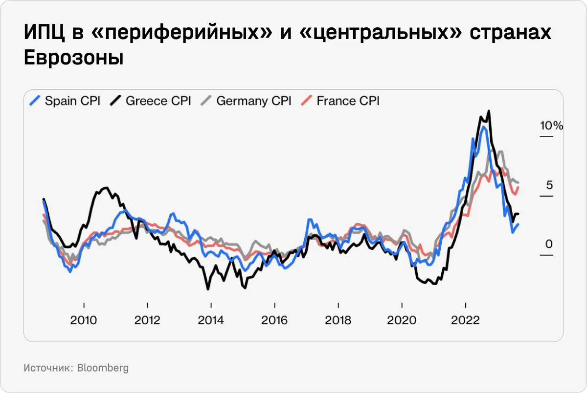 Инфляция в еврозоне остается устойчивой: в августе она составила 5,3%, не изменившись за месяц. Что интересно, в отличие от предыдущих месяцев, главная проблема с инфляцией сейчас в ключевых экономиках еврозоны — Франции и Германии.