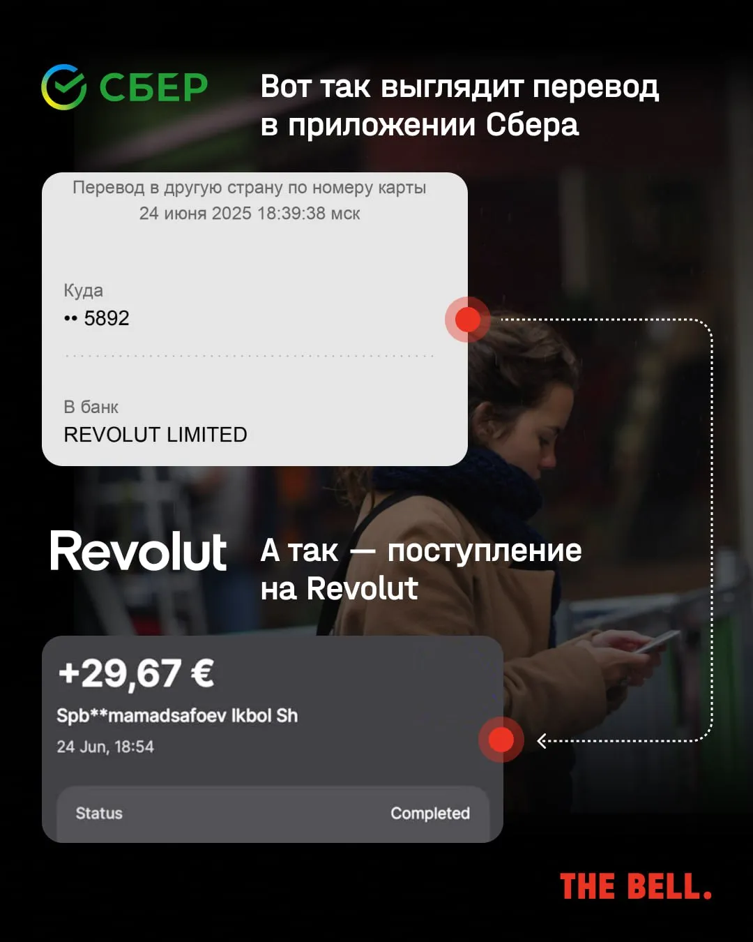Как выяснил The Bell, Сбербанк позволяет отправить рубли с конвертацией в евро на счета как минимум двух европейских необанков: британо-литовского Revolut и немецкого N26. Мы отправили два перевода на разные карты: комиссия при переводе 3000 рублей составила 30 рублей, операция прошла по курсу чуть более 100 рублей за евро (официальный курс ЦБ — 91 рубль). Еще один клиент Сбербанка, с которым поговорил The Bell, также успешно отправил деньги на счета в Revolut и N26. В середине июня о таких переводах в своем телеграм-канале написал журналист Никита Могутин.