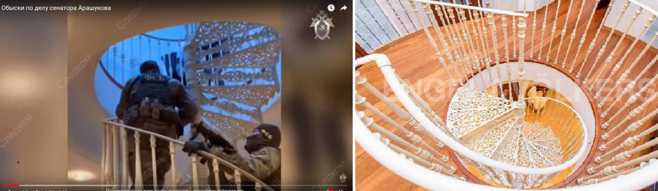 • На прошлой неделе телеграм-канал Mash сообщил, что после ареста Арашуковых квартира из видеозаписи обысков выставлена на продажу за 99 млн рублей, объявление появилось на сайте агентства Engel & Völkers. Фото объекта в объявлениях и изображение на видео СК совпадают.