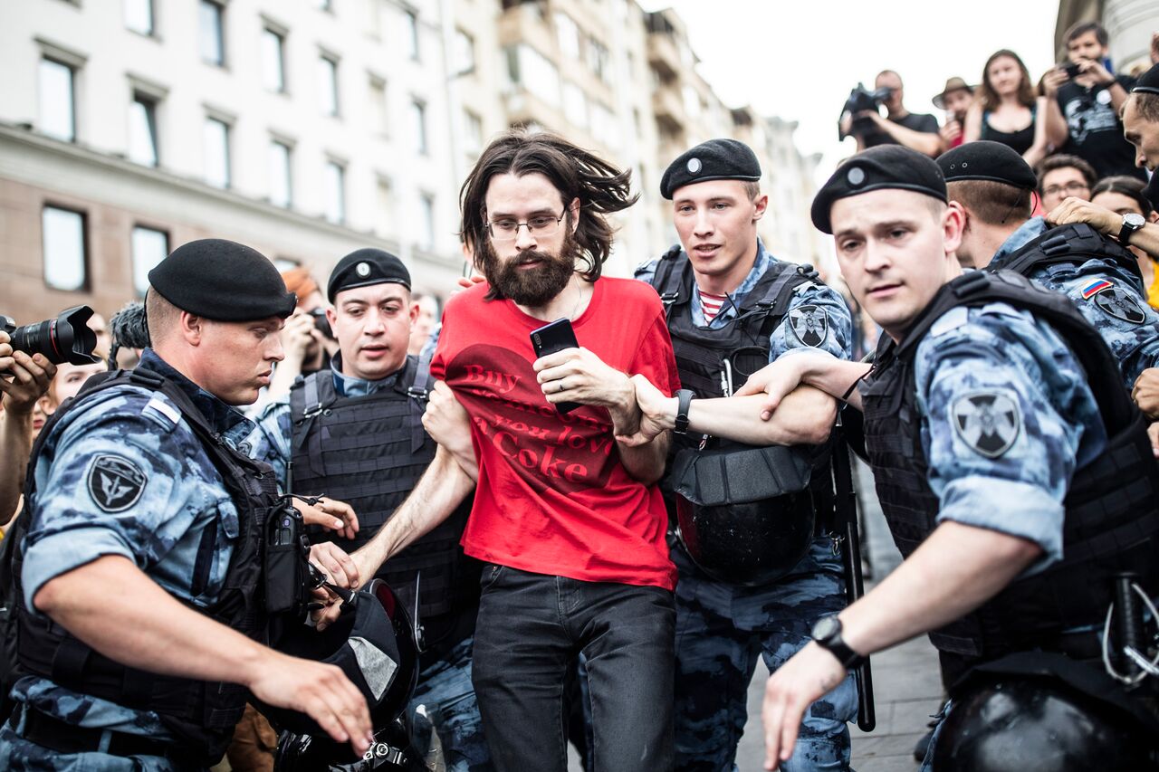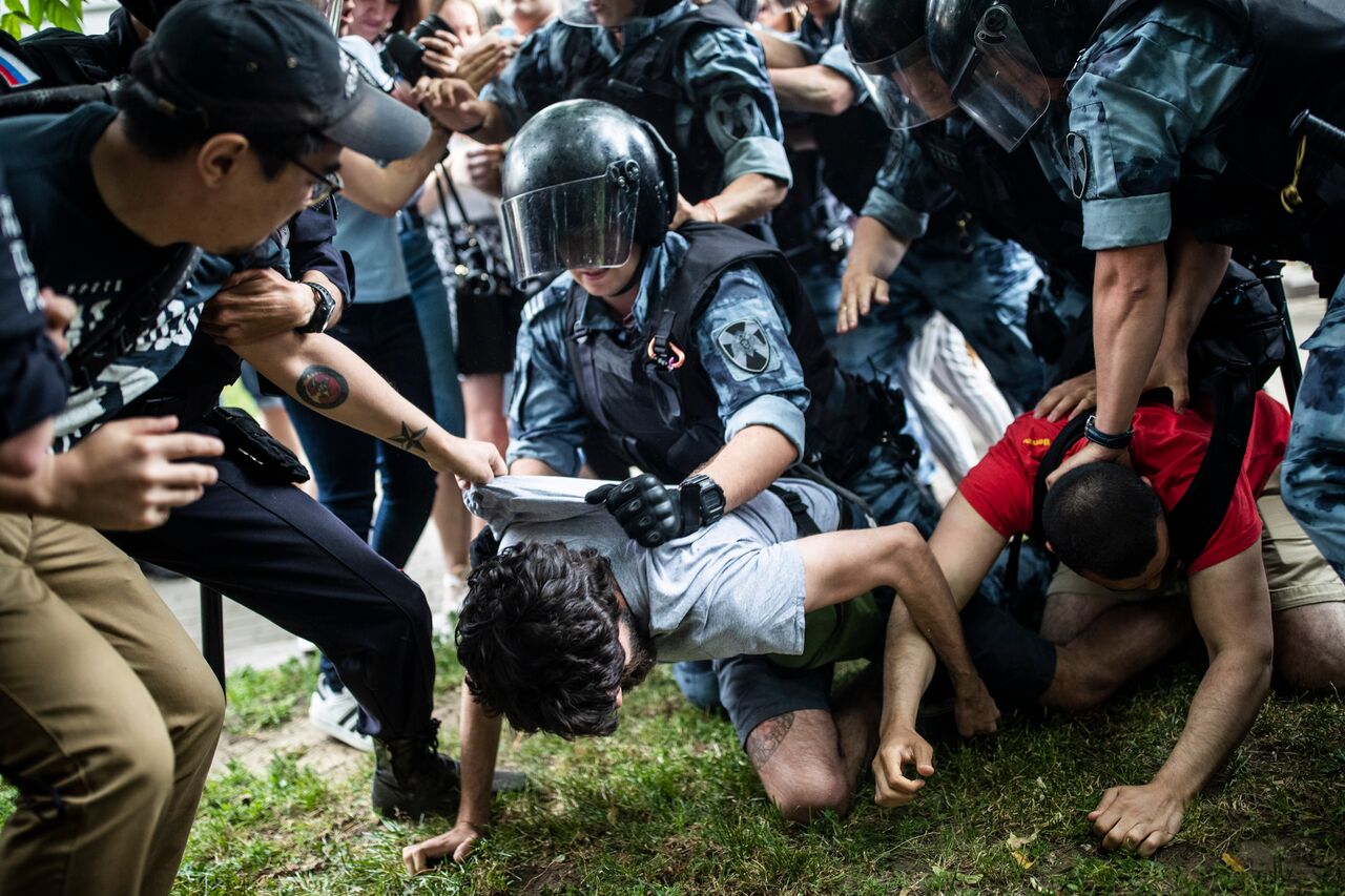 Первыми в поле зрения полиции попадали люди в футболках «Я/Мы Иван Голунов». Для того чтобы оказаться в автозаке, необязательно было вести себя агрессивно, скандировать лозунги или мешать проезду машин.