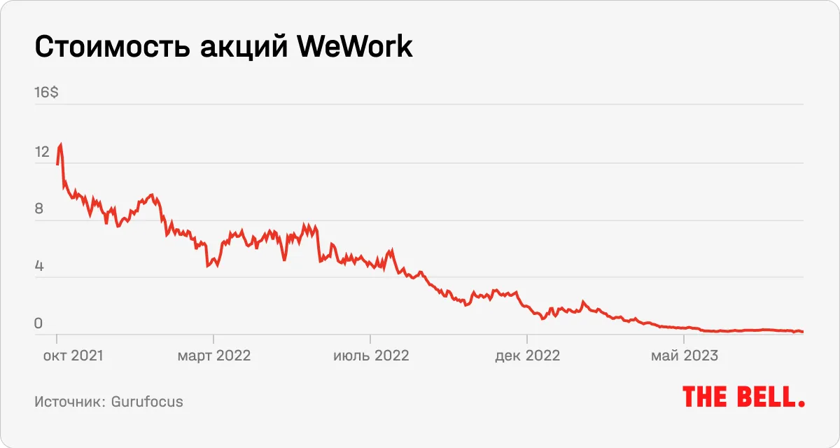 9 августа WeWork предупредила инвесторов, что ее убытки и прогнозируемые потребности в денежных средствах в сочетании с увеличением оттока участников и текущим уровнем ликвидности вызывают «существенные сомнения» относительно самой возможности продолжать деятельность в будущем. Акции компании рухнули почти на 40% за один день. С момента выхода на биржу акции WeWork потеряли уже почти 99%.