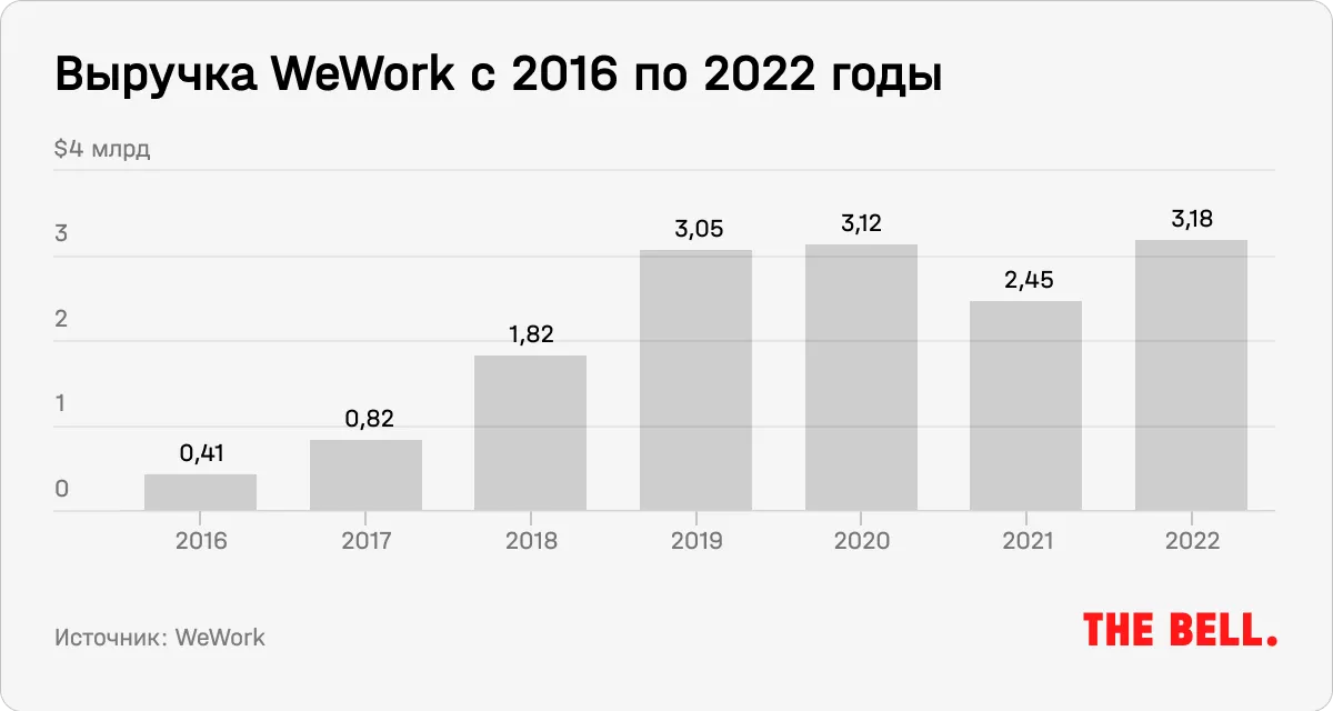 WeWork появилась в 2010 году в Нью-Йорке и менее чем за десятилетие разрослась до огромного бизнеса, ведущего дела в десятках стран. Как писал американский Forbes, в 2014 году WeWork была «самым быстрорастущим арендатором новых офисных площадей в Нью-Йорке», планировала получить такой же статус в Америке, а также выйти на международный уровень.