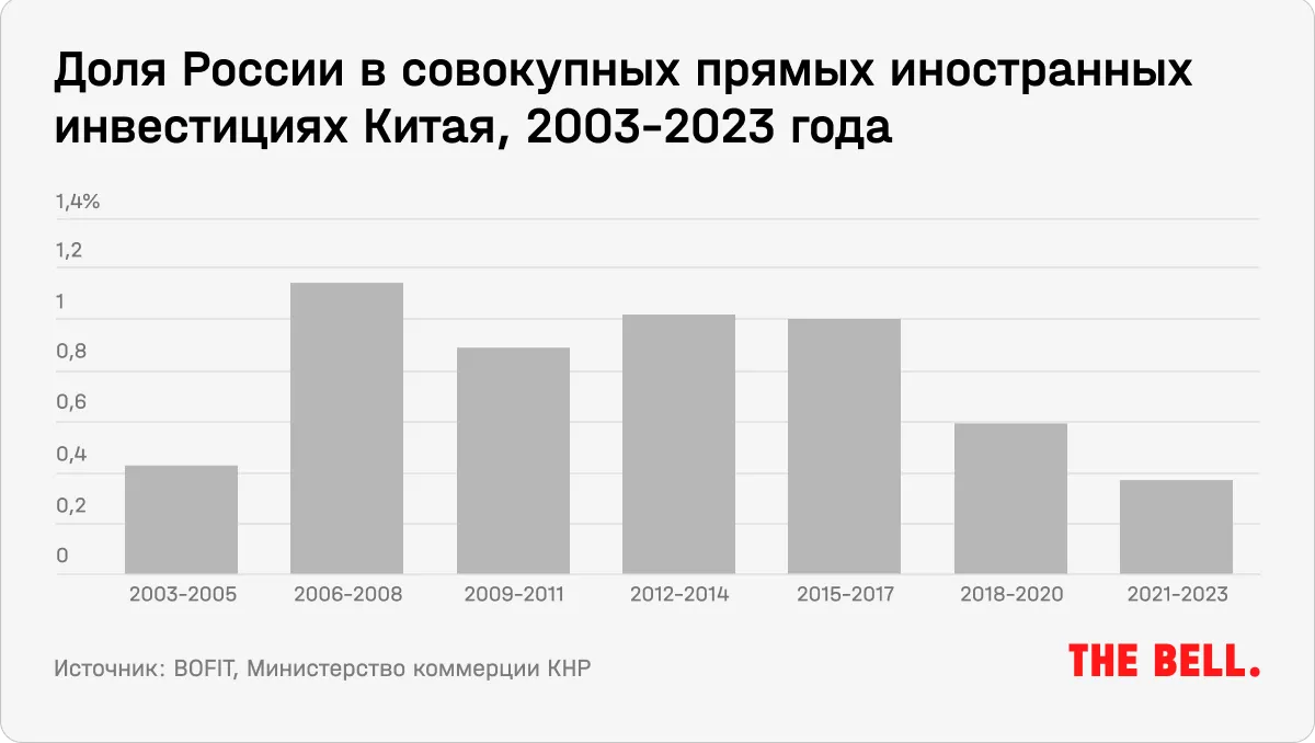 Но, несмотря на все это, экономические отношения между Москвой и Пекином остаются поверхностными, говорится в новом докладе Института развивающихся экономик Банка Финляндии (BOFIT). Все имеющиеся данные указывают на то, что даже в текущих условиях Китай не стал увеличивать инвестиции в Россию, а, наоборот, сократил их. В этом контексте китайские инвесторы повели себя так же, как и западные.