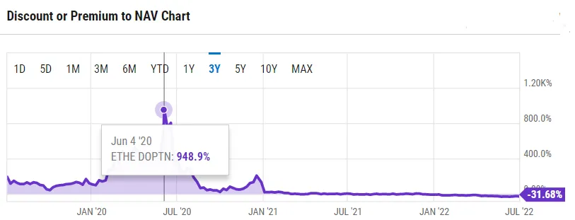 YCharts: Бычачья премия ETHE плавно перешла в 2022 году в медвежью скидку