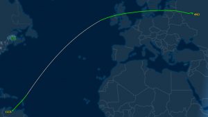 Перелет бизнес-джета из Каракаса в Москву, данные с сайта FlightAware.